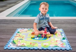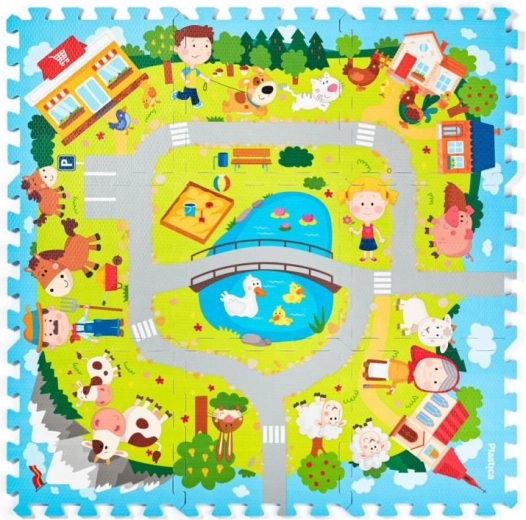 Pěnové podlahové puzzle Vesnice je ideální volbou do dětských pokojů i herních koutků. Díly s barevným potiskem vytvářejí hrací plochu, která je příjemná na dotek, snadno se udržuje a zároveň chrání děti před chladem z podlahy. Vroubkovaný povrch bez vyjímatelných dílků zvyšuje bezpečnost při hraní.