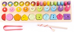 Dřevěná vzdělávací sada 4v1 s čísly, tvary a magnetickým rybolovem