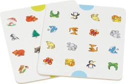 Dřevěné pexeso Zvířátka a symboly je hra, která posune vaše pexeso na nový level. Hráči vkládají kartonové předlohy s obrázky do základní dřevěné desky a zakrývají je modrými kameny. Hra probíhá stejně jako klasické pexeso, ale vítězí ten, kdo nasbírá nejvíce modrých kamenů.