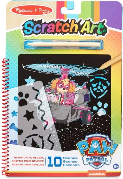 Spirálový blok s černými stránkami odhaluje po poškrábání zářivé barvy a motivy z Paw Patrol. Ideální pro první kreslířské pokusy.