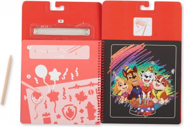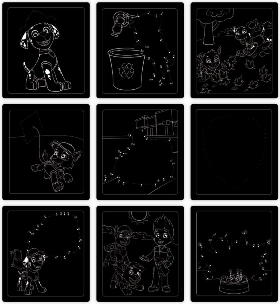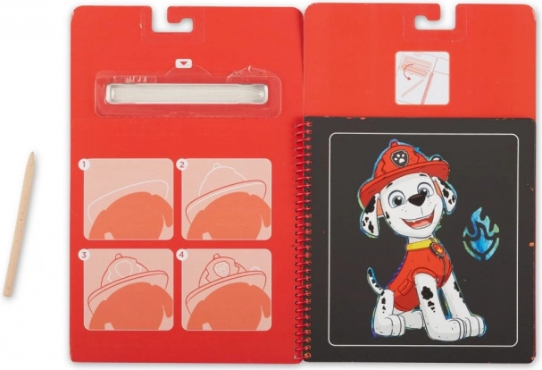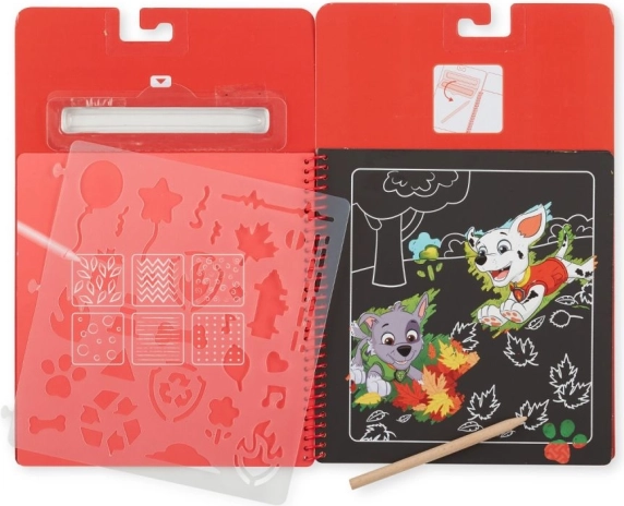Pod černou vrstvou se skrývají pestré barvy a scény s Marshallem. Děti si užijí okamžitý „wow“ efekt při každém škrábnutí.
