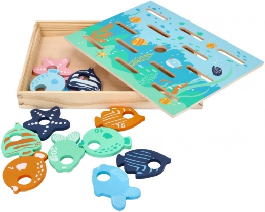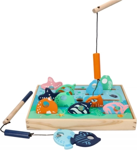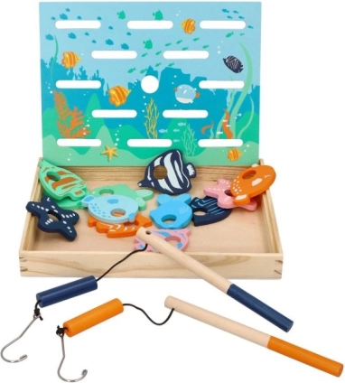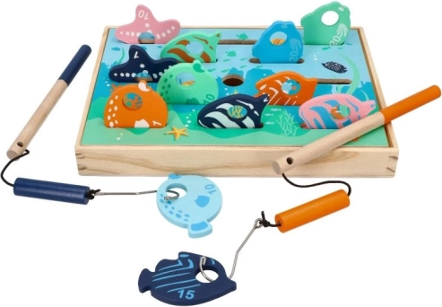 Dřevěná rybářská hra je navržena pro děti, které si rády hrají a učí se novým věcem. Tento interaktivní set zahrnuje dřevěné pruty s magnety a pestře malované rybky, které jsou navrženy tak, aby simulovaly chytání skutečných ryb.
