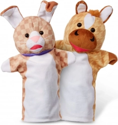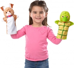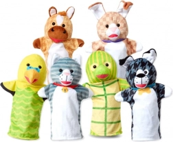 S touto barevnou sadou loutek na ruku oživíte každé domácí divadlo. Děti mohou snadno vklouznout rukou do loutky a rozhýbat zvířátka – pejska, kočičku, králíčka, koníka, papouška či želvu – a vytvářet příběhy plné emocí a smíchu. Loutky jsou měkké, bezpečné a vhodné pro malé dětské ruce.