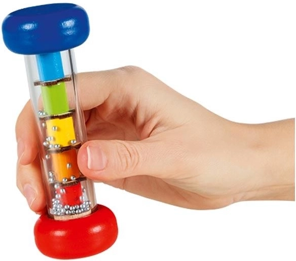 Objevte kouzlo uklidňujícího zvuku deště s mini dešťovou holí GOKI. Tato barevná hudební hračka podporuje rozvoj sluchu a zraku, přirozeně vede děti k rytmu a může se stát prvním hudebním nástrojem vašeho malého muzikanta. Snadným otáčením průhledného tubusu se kuličky přesouvají a vytvářejí jemný, uklidňující zvuk připomínající kapky deště.