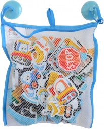 Díky odolnému materiálu jsou dílky bezpečné, měkké a příjemné na dotek. Sada podporuje koordinaci oko–ruka, logické myšlení i slovní zásobu. Součástí může být i praktický síťovaný sáček se sponami/přísavkami pro snadné sušení a ukládání, aby byla koupelna vždy upravená.