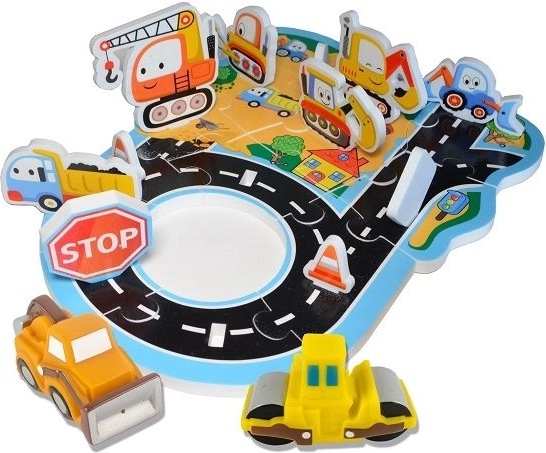 Lehké pěnové dílky plavou a po navlhčení drží na obkladech. Děti si postaví silnice, rozmístí značky a oživí hru stavebními vozidly.