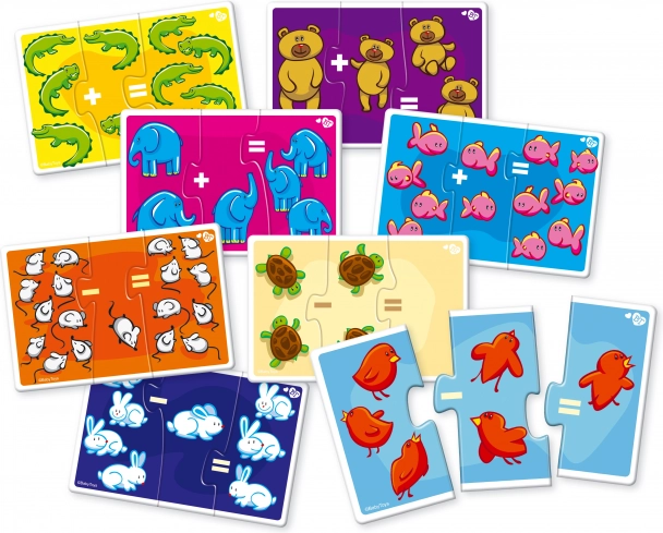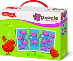 S puzzle trojicemi dílků, se které skládají z obrázků, děti snadno pochopí základní pojmy matematiky v hravém prostředí. Tato sada je ideální pro rozvoj logického myšlení a kognitivních schopností.