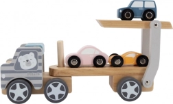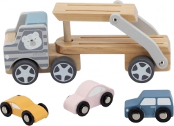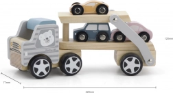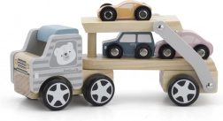 Dřevěná odtahovka VIGA PolarB přináší dětem zábavu i učení v jednom. Set zahrnuje nákladní vůz s přívěsem a tři barevná autíčka, které lze snadno nakládat pomocí sklopné rampy. Odolné dřevo a pečlivé zpracování zajišťují dlouhou životnost, zatímco netoxické barvy splňující normy EN71 a ASTM garantují bezpečnost při každodenní hře.