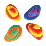 Barevné kamínky, kelímky a karty s úkoly vedou děti k jednoduchým i pokročilejším aktivitám: od třídění podle barev až po sčítání a tvorbu vzorů.