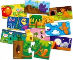 Far Far Land Puzzle je ideální vzdělávací hračka pro děti od tří let. Tato sada obsahuje 10 puzzle obrázků, z nichž každý se skládá ze dvou dílků – na jednom je zvířátko a na druhém jeho příbytek. Díky této hře se děti učí poznávat různé typy zvířat a jejich prostředí, čímž rozvíjejí svou schopnost třídění a kombinace.