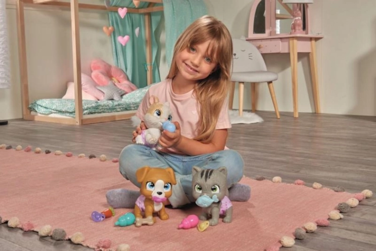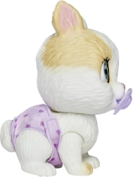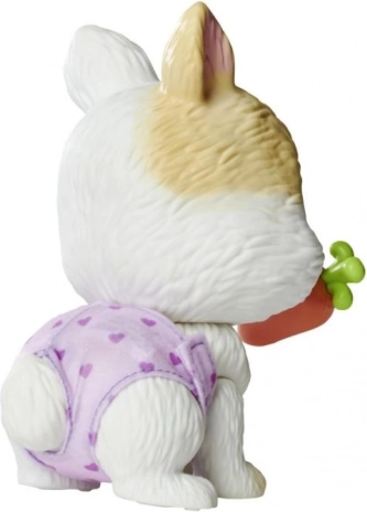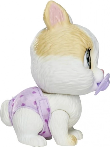 Roztomilý králíček z řady Pamper Petz hledá nového opatrovníka, který mu dá jméno a zahrne ho láskou. Umí pít skutečnou vodu z lahvičky a čůrat do plínky, která po namočení mění barvu. Díky magické tlapce navíc zjistíte, zda je to holčička nebo chlapeček. Součástí je papírové přenosné „domečkové“ balení s rukojetí a překvapivé doplňky. Vhodné od 3 let.