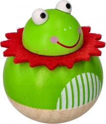 Roztomilé nepřevrátitelné zvířátko ve tvaru žabky od značky Goki potěší každé děťátko. Díky zaoblené spodní části se po postrčení vždy vrátí zpět na nožky, lze ho také roztočit jako káču. Kombinace kvalitního dřeva a filcu, bezpečné barvy a kompaktní rozměry z něj dělají zábavnou hračku pro rozvoj jemné motoriky a smyslového vnímání.