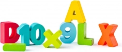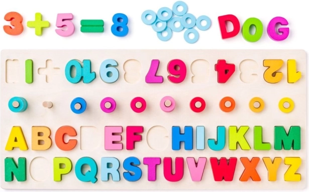 Deska kombinuje učení abecedy, čísel a základních matematických operací, což z ní činí všestrannou pomůcku pro děti.