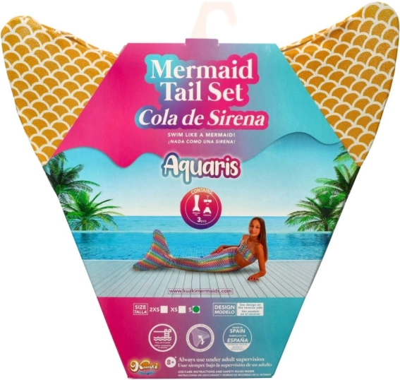 Se sadou ploutve a bikin Aquaris Sunny si vaše dítě užije doslova podmořskou jízdu! Tento kostým je navržen s ohledem na bezpečnost a pohodlí dětí, doporučuje se však používání pod dohledem dospělé osoby. K dispozici jsou tři velikostní varianty: 2XS, XS a S, aby každé dítě mohlo najít svůj správný velikost.