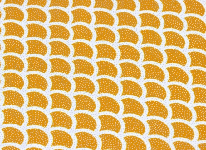 Použitý materiál je navržen tak, aby vydržel běžné opotřebení a tear. Vzor s oranžovými půlkruhy a bílými tečkami na bílém pozadí dodává ploutvi elegantní vizuální dojem.