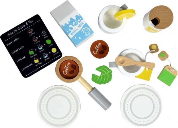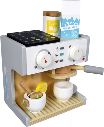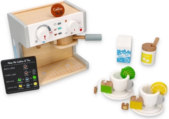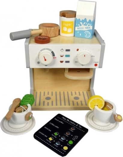 Obohaťte dětskou hry na domácnost a kuchyň s touto úžasnou dřevěnou sadou kávovaru a čajovaru. Set je navržen tak, aby děti mohly imitovat přípravu nápojů a bavit se při kreativní hře. Tento kávovar je vyroben z kvalitního dřeva, což zajišťuje jeho dlouhou životnost a bezpečnost pro děti.