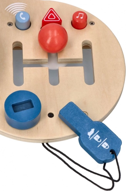Představujeme dřevěnou volantu pro děti, která je ideální pro malé řidiče ve věku od 3 let. Tento dřevěný volant je vybavený pískajícím klaksonem a pstrykajícím ovladačem. Není potřeba žádné baterie, takže zábava může začít okamžitě!