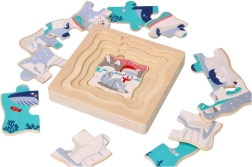 Tato dřevěná vrstvená skládanka s nádechem Arktidy přichází s 15 pestrobarevnými puzzle kousky a kvalitní dřevěnou základnou. Je navržená tak, aby zlepšila kognitivní rozvoj a koordinační schopnosti u dětí.
