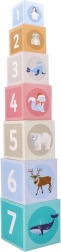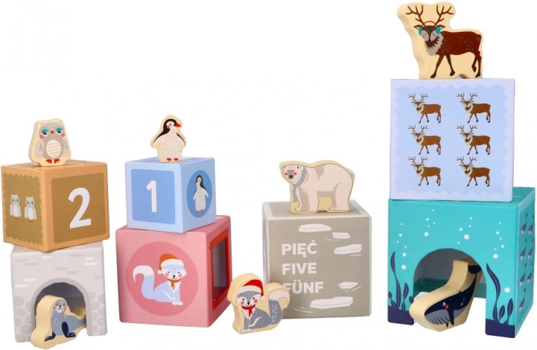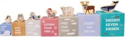 Každá kostka nabízí víc než jen stavění: najdete na ní číslice 1–7, odpovídající počet zvířátek, obrázky polárních kamarádů a názvy čísel ve třech jazycích (PL/EN/DE). Díky chytrým výřezům děti snadno vytvoří domečky, zoo i malé scény. Kostky lze skládat do sebe, takže se hračka snadno ukládá i přenáší.