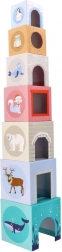 Stavění věže z různě velkých dílů je nadčasová zábava, která děti baví a učí. Tato pyramida kombinuje tvrdý karton a dřevo, má hladké hrany a je vyrobena z netoxických, bezpečných materiálů s prohlášením shody CE – ideální volba pro první stavebnici.