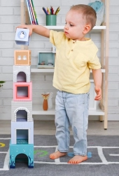 Stohování, vyvažování a vkládání kostek do sebe podporuje jemnou motoriku, koordinaci oko–ruka i prostorovou představivost. Ideální první stavebnice pro děti 12m+.