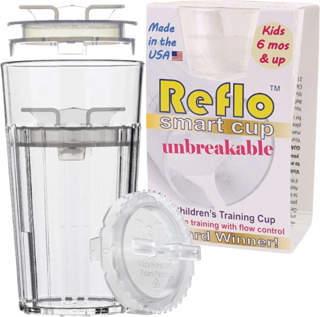 Učte své dítě pít jako dospělí – bez strachu z rozbití. Tréninkový kelímek Reflo má promyšlenou vložku, která reguluje průtok, takže tekutina vytéká postupně a dítě se snadno naučí správně srkat i bez saviček. Čiré provedení umožňuje kontrolu obsahu a žebrovaný tvar usnadňuje držení i malým ručkám.