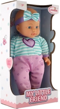 Panenka My Little Friend je ideálním společníkem pro vaši ratolest. Oblečená do barevného oblečku s krásnou mašlí, tato panenka stimuluje představivost a prohlubuje dovednosti jako je zodpovědnost a empatie. Její hlavička je vyrobena z gumy, zatímco tělo je měkké a látkové, což jí dodává realističnost. S výškou 30 cm je perfektní pro malé dětské ručky.