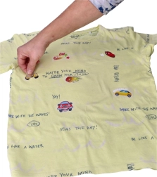 Po správné aplikaci vydrží běžné nošení i praní. Doporučujeme prát naruby a nepřekračovat 40 °C.