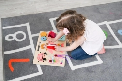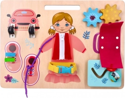 Objevte zábavnou a vzdělávací herní desku Anička, která rozvíjí jemnou motoriku a logické myšlení dětí. S prvky jako posuvná kočička a různé zapínaní se děti učí skrz hru.
