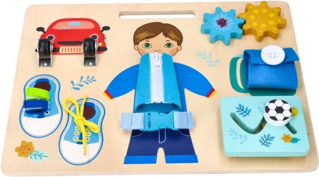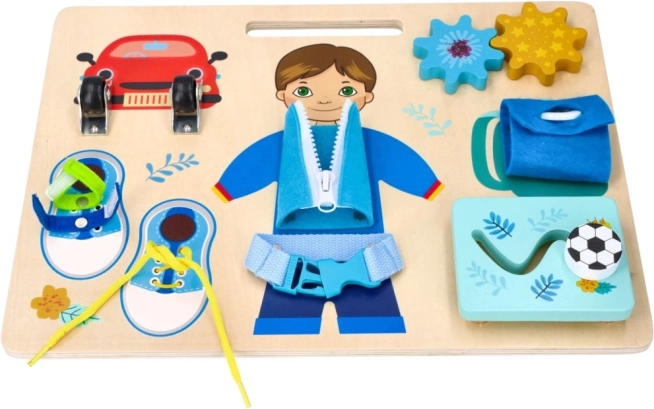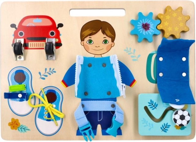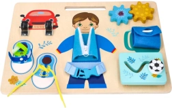 Učí šněrování bot, zapínání zipů a manipulaci s přezkami, což jsou praktické dovednosti.