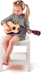 Toto dřevěné ukulele je ideální hudební nástroj pro malé muzikanty. Je vhodné pro děti od 3 let a poskytuje lehkost a jednoduché hraní díky své velikosti a tvaru.