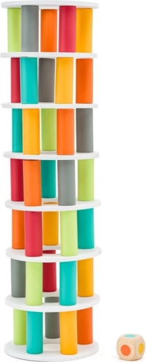 Součástí je hrací kostka s barvami, která určuje, jaký dílek má hráč vytáhnout nebo přidat. Díky kvalitnímu dřevu a bezpečnému zpracování je hra vhodná pro každodenní hraní. Věž může dosáhnout výšky až 35 cm, což přidává na vzrušení i tréninku trpělivosti.