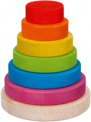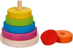 Dřevěná skládací věž Duha je ideální hračka pro malé děti, která kombinuje zábavu a vzdělávání. Dřevěné kroužky se navlékají na tyčku od největšího k nejmenšímu, což pomáhá nejen rozvíjet jemnou motoriku, ale i trpělivost a řešení složitějších úkolů.