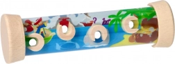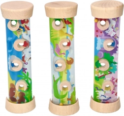 Díky kompaktním rozměrům (∅ 4,5 cm × 15,5 cm) se skvěle hodí na cesty, do čekáren i domů. Pevné dřevěné konce a kvalitní povrchy zajišťují odolnost a bezpečné používání. Design s motivem divokých zvířat děti okamžitě zaujme a motivuje k dalším pokusům.