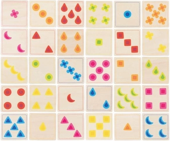 Akční hra barvy a tvary GOKI je dynamická postřehová hra, která zabaví celou rodinu. Hráči soutěží v rychlosti a přesnosti – kdo jako první najde správnou shodu na dřevěných destičkách, získá bod. Díky jednoduchým pravidlům se do hry děti snadno zapojí a zároveň si procvičí rozpoznávání barev, tvarů i počtů.