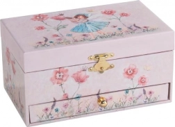 Elegantní hrací šperkovnice s motivem vlčích máků potěší malé parádnice i milovníky dekorací. Po otevření zazní melodie z baletu Labutí jezero a baletka se roztančí před zrcadlem. Praktické přihrádky a zásuvka usnadní přehledné uložení drobných pokladů.