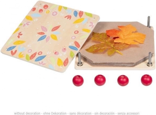 Objevte radost z přírody s dřevěným lisem na rostliny GOKI. Díky praktickým šroubovacím uzávěrům snadno vylisujete květy a listy do krásných dekorací a vzpomínek. Kompaktní lis s lepenkovými vrstvami mezi dřevěnými deskami je ideální pro tvoření přáníček či přírodních obrazů a pro bezpečné a kreativní hraní dětí.