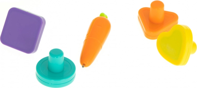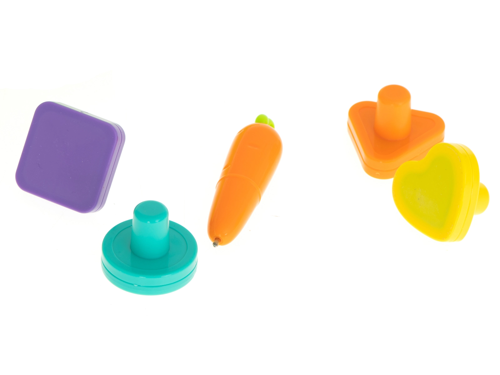 Interaktivní prvky přinášejí zvuky zvířat, zvuky dopravních prostředků, zvuky z domácnosti a veselé melodie. Hračka má 2 úrovně hlasitosti a možnost zvuk zcela vypnout. Rysk ve tvaru mrkve vydává při zasunutí do „tlamičky“ koníka efekt křoupání. Okraje tabulky zdobí vypouklá písmena a číslice – ideální k prvnímu seznamování s tvary.