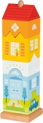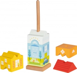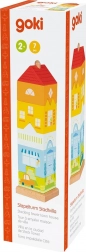 Barevná nasouvací věž od značky GOKI přináší zábavné skládání městské vily z šesti kostek. Dílky se nasouvají na středovou tyč ve správném pořadí, což podporuje jemnou motoriku, pozornost a logické myšlení. Robustní dřevěné provedení zaručuje odolnost a dlouhou životnost hračky.