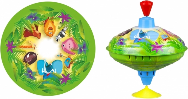 Káča s motivem džungle zaujme veselými obrázky zvířat a příjemným „bzučivým“ zvukem při točení. Je ideální pro první hry, učí děti vnímat příčinu a následek a podporuje soustředění. Přísavka na spodní straně zajišťuje lepší stabilitu a bezpečnější hraní na různých površích.
