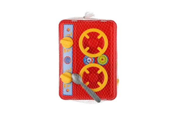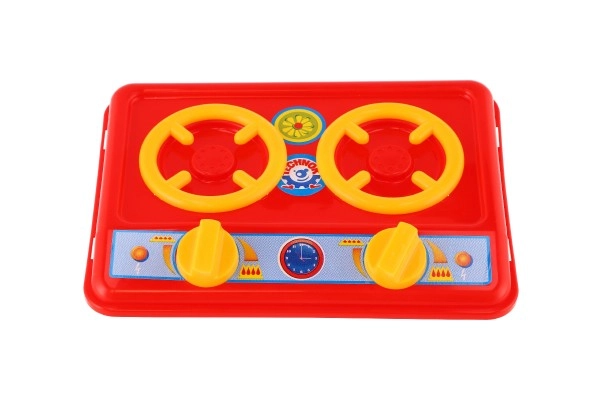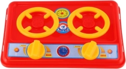 Dvouplotýnkový červený vařič s otočnými knoflíky podněcuje představivost a učí děti základům vaření při bezpečné hře.