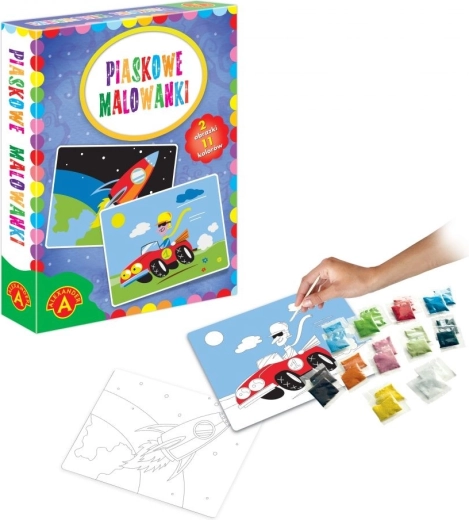 Kreativní sada od značky ALEXANDER pro malé umělce od 5 let. Děti postupně odkrývají samolepicí části a sypou na ně barevný písek, čímž vznikají živé a jedinečné obrázky. Aktivita podporuje jemnou motoriku, souhru oko–ruka, souostředění a sebedůvěru při tvoření.