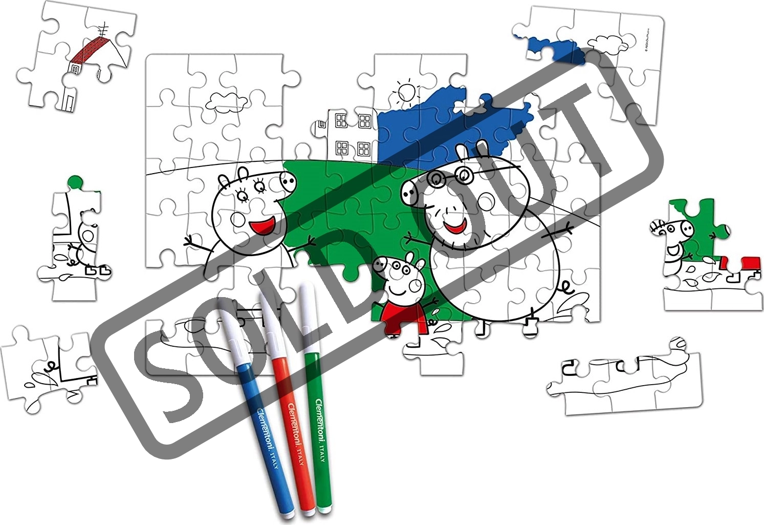 Zábavné oboustranné puzzle s motivem PEPPA PIG přináší dvojí radost – z jedné strany puzzle ke skládání, z druhé strany omalovánku k vybarvení. Podporuje manuální zručnost, soustředění a schopnost pozorování. Díky kvalitním materiálům a exkluzivní technice tisku mají dílky krásné, živé a zářivé barvy. Součástí balení jsou 3 fixy.