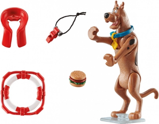 Scooby v záchranářské výbavě – s plavacím kruhem a vestou – umožňuje realistické scénky a snadné pózování díky pohyblivým částem.