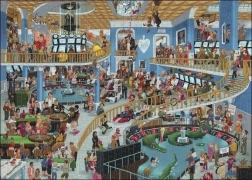 Puzzle Chaotické Kasino od HEYE nabízí unikátní výzvu s 1000 dílky, ideální pro fanoušky barevných a zábavných karikatur. Balení obsahuje netradiční trojbokou krabici a plakát jako předlohu.