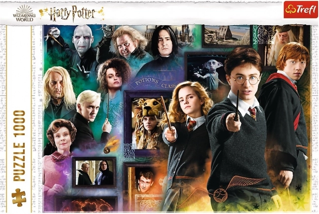 Užijte si ikonické hrdiny a atmosféru kouzelnického světa v bohatě ilustrované koláži, která potěší každého fanouška.