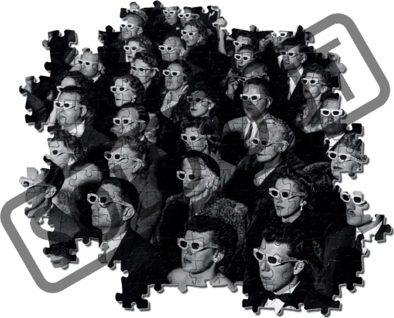Klasická fotografie publika se 3D brýlemi dodá interiéru styl a výrazný kontrast. Po složení je obraz připraven k zarámování.