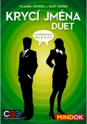 Duet přináší čistý kooperativní zážitek ideální pro páry i menší skupiny, vysokou znovuhratelnost díky 100 oboustranným kartám klíče a variabilním misím na bločku map. Součástí je 200 karet s 400 novými slovy, které jsou kompatibilní se základní edicí Krycích jmen, ale tuto hru lze hrát zcela samostatně bez dalších produktů.