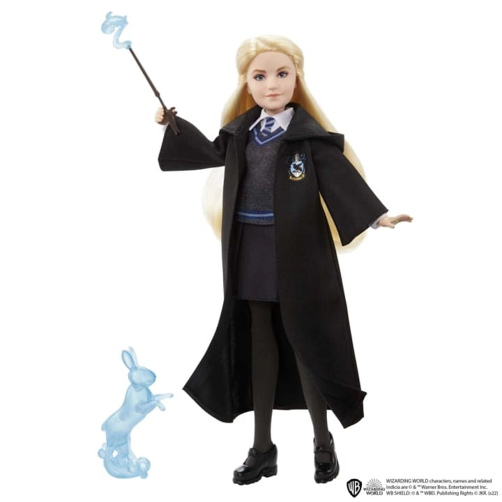 Zažijte magické momenty z Bradavic s panenkou Luna Lovegood inspirovanou filmovou předlohou. Luna má černý hábit s erbem koleje Ravenclaw, školní uniformu a detailní kouzelnickou hůlku s modrým efektem kouzla. Průsvitná figurka Patrona v podobě zajíce dodá vašemu vyprávění pravé kouzlo.