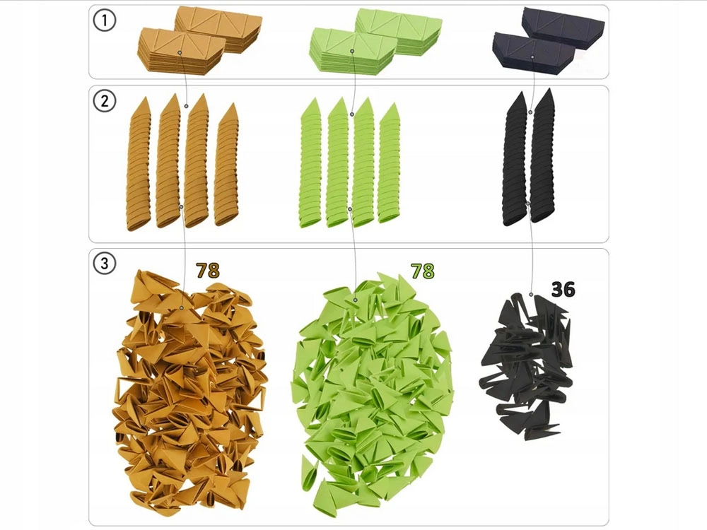 Vstupte do světa 3D origami a vytvořte si vlastní želvy z odolných papírových modulů. Díky patentovanému tvaru s vyraženou linií ohybu složíte základní dílek ve třech jednoduchých krocích a následně je spojíte bez lepidla do hotové figurky. Všechny moduly se skládají stejně, takže si rychle osvojíte postup a skládání je plynulé a zábavné.
